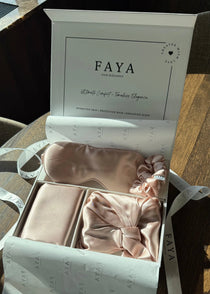 That’s when I discovered the beauty of 100% mulberry silk and the idea for the Faya Silk Élégance Signature Silk Set was born. A collection of silk essentials such as silk sleeping masks, silk bonnets, silk pillowcases, silk scrunchies and silk nightwear, created with intention and love, designed to support your hair, skin and sleep.