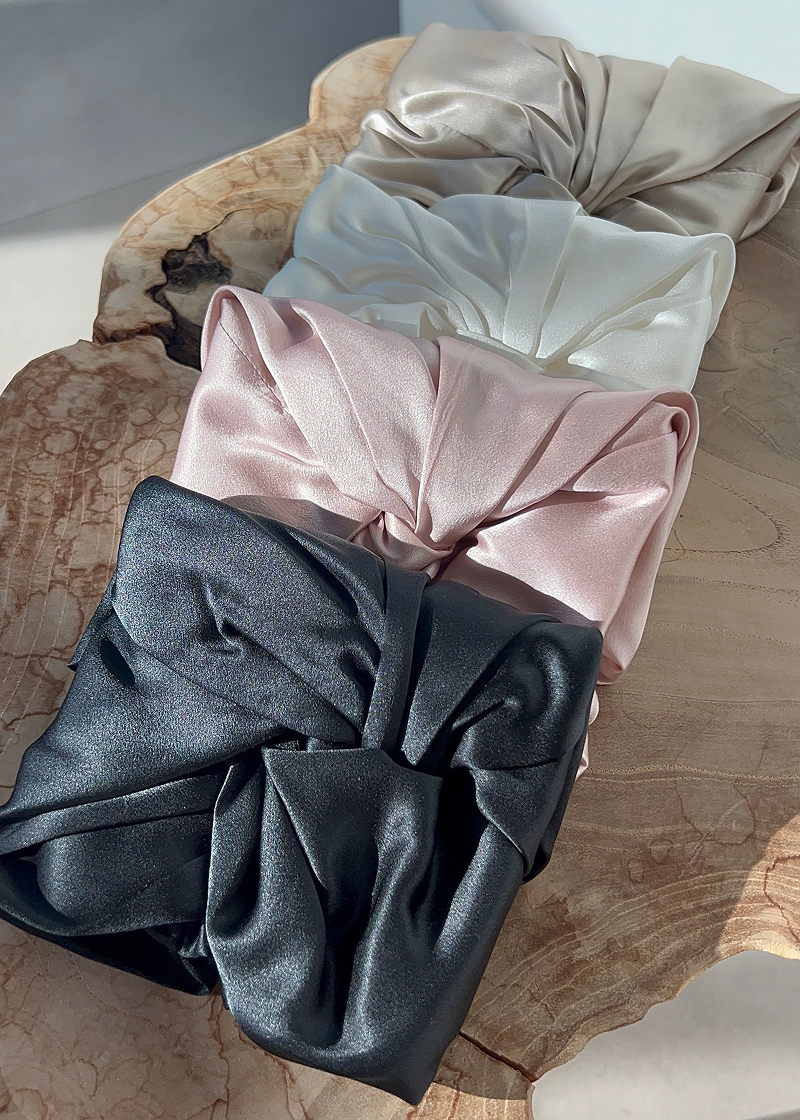 Silk Scrunchie: A gentle, no-crease silk scrunchie that minimizes hair breakage, prevents tension and provides a secure yet delicate hold.